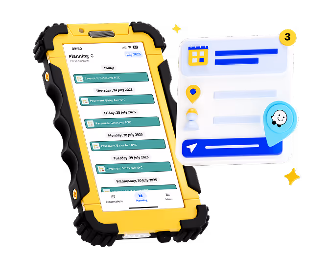 Use the notification button to send instant alerts about schedule changes or updates. Everyone knows exactly which site they’re working on each day, keeping everything on track.